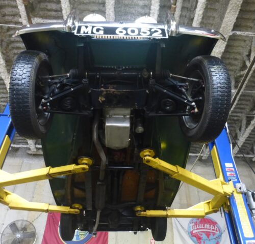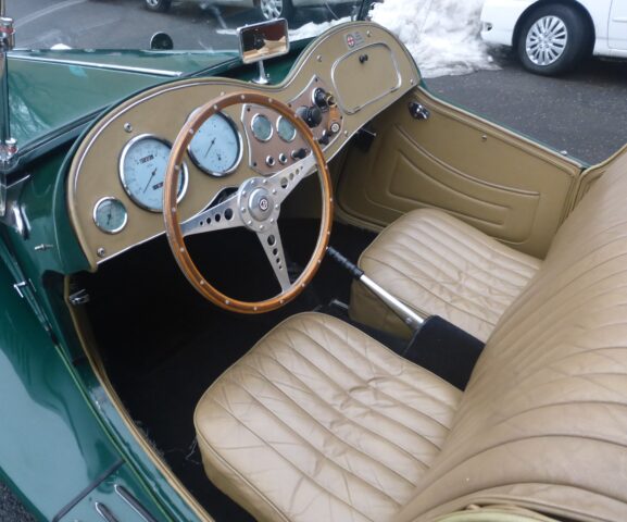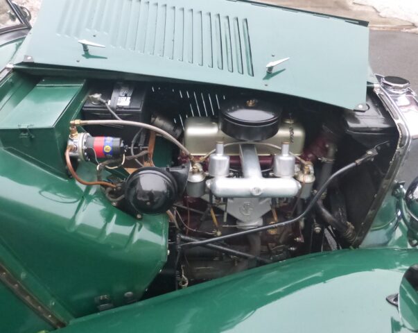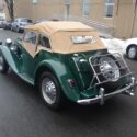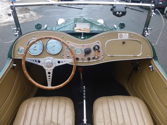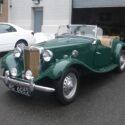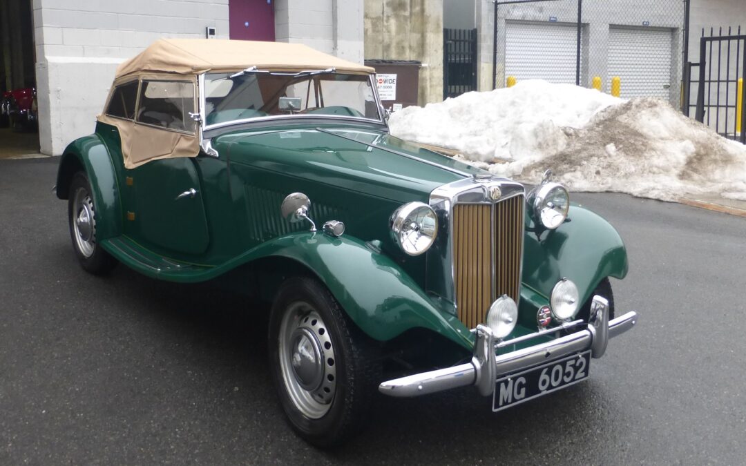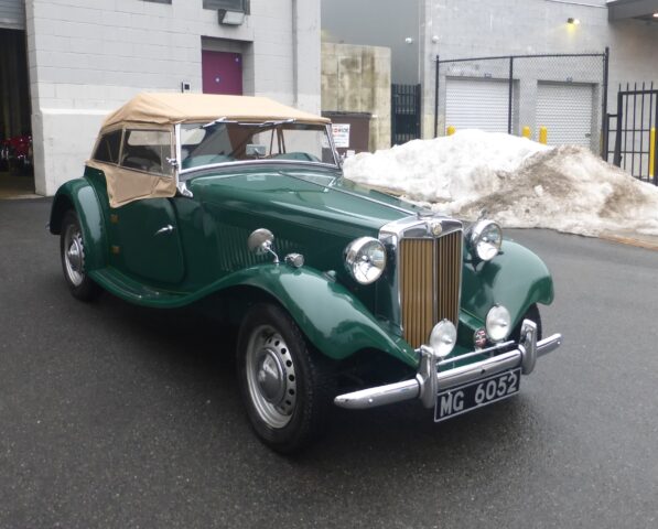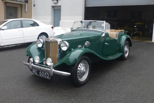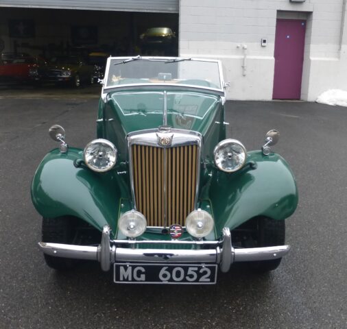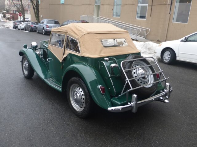 Very attractive 1952 MG TD finished in classic British Racing Green over tan. Nicely restored and well maintained. Paint presents well with minor spidering in two small areas. Chrome is bright. Interior is clean and inviting. Engine runs smoothly, gearbox shifts properly, brakes are strong. Clean and solid underside with wood framing in very good condition. Includes luggage rack, picnic basket, tonneau cover, spare wheel, and original steering wheel. An affordable and enjoyable example ready to drive and show. $15,950.